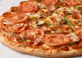 Pepperoni, ground beef,pork sausage,onion,green peppers, black olives.